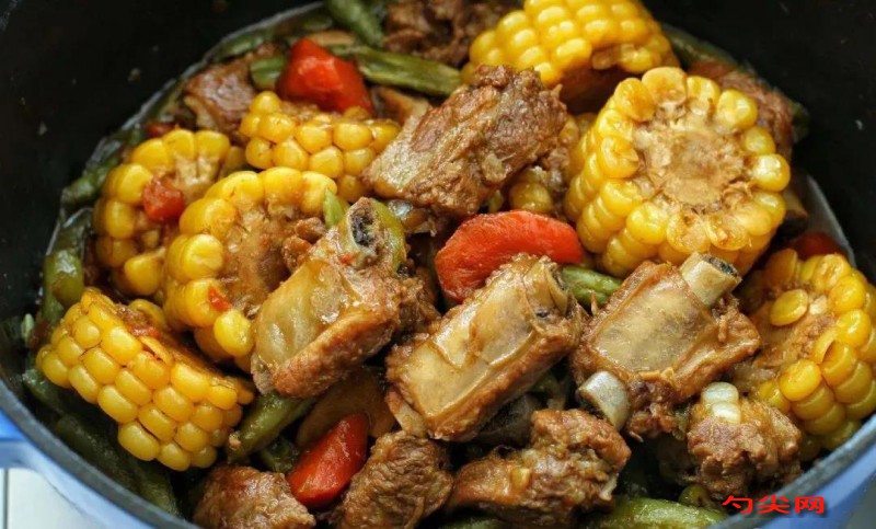 配方:玉米200克,鮮排350克,四季豆230克。小料(八角3顆,蒜子5個(gè),姜片、小蔥段各8克)骨湯600克,味達(dá)蕾901#5克,鹽5克,白糖、老抽各2克,醬油、雞精各10克,濕淀粉15克,色拉油1千克(約耗80克)。