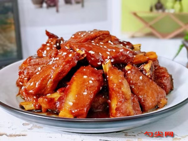 7、時(shí)間差不多了,鍋中的湯汁已經(jīng)快要收干了,這個(gè)時(shí)候根據(jù)自己的口味添加鹽和醋、味達(dá)蕾89#肉精油香精,小火蓋上蓋子再燜5分鐘,最好是不要將湯汁全部收干,留點(diǎn)湯汁拌米飯,味道特別好吃,關(guān)火出鍋加上白芝麻,做到美味的糖醋排骨就做好了。