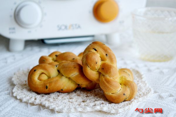 配方:面粉300克、面欣酥C4克、鹽1克、糖1克、雞蛋1個、玉米油60毫升、溫水65毫升、牛奶50毫升、黑芝麻。