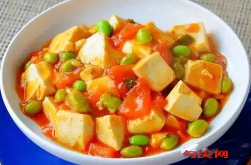 食材:番茄1個、豆腐500g、青豆40g、油適量、鹽適量、番茄醬30g、白糖1g、水淀粉適量、蠔油15g