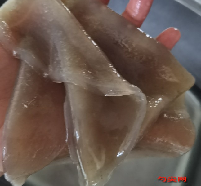 工藝:將筋力源T與干淀粉拌勻,加入三百多克水,拌勻,過一下篩網,涼皮撐子里刷一層油,倒入一大勺淀粉水,晃動均勻,鍋里放水燒開放準備好的涼皮撐子。蓋鍋蓋,觀察鼓泡了后把撐子按入水里,一分鐘后撈出來,放灌滿涼水的水槽里,浸泡涼水,輕輕撕開即可。看一下成品還不錯,放到盆里涼水浸泡,晚上拌菜吃。