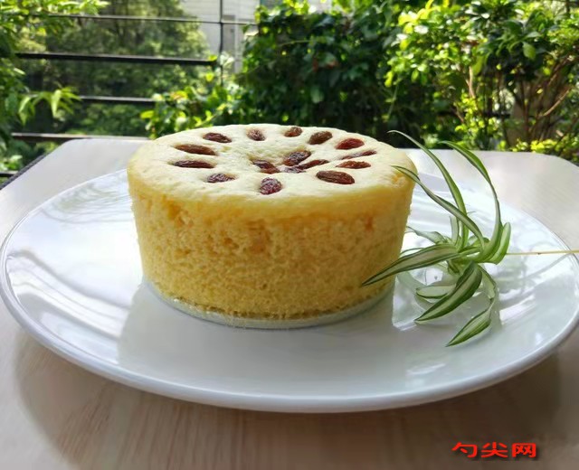 工藝:準(zhǔn)備材料,中筋面粉和玉米粉,泡多源K,泡多源Q,過(guò)篩入大碗,過(guò)篩后容易攪拌均勻,水加入酵母攪拌均勻,雞蛋一個(gè)敲入碗中,用筷子打散,加入白糖和蛋液,加入酵母水,用橡皮刮刀或者勺子攪拌均勻至無(wú)干粉狀態(tài)。面糊比較稀,是具有流動(dòng)性的。,模具四周和底部刷油,將面糊倒入模具,抹平表面,手背沾油可以將面糊表面抹平且不粘手易操作。夏天可以選擇室溫發(fā)酵,我放在陽(yáng)臺(tái)露天發(fā)酵,模具需加蓋或者蒙保鮮膜,時(shí)間一個(gè)小時(shí)左右。發(fā)酵至兩倍大(模具九分滿),這樣子發(fā)糕才會(huì)蓬松,有漂亮的孔洞。發(fā)酵到位,表面放紅棗或者葡萄干(將紅棗切開(kāi)去核,分成兩半,輕按在面糊表面。)水燒開(kāi)后放入模具,中火蒸30分鐘,關(guān)火5分鐘后揭蓋(蒸時(shí)無(wú)需蒙保鮮膜)發(fā)糕放至不燙手后即可脫模,將一個(gè)玻璃杯放在模具下面,雙手捧住模具輕輕往下拉即可脫模,用塑料蛋糕刀貼著發(fā)糕底部平劃過(guò)去,即可脫去底模,現(xiàn)在來(lái)看看內(nèi)部組織,這是發(fā)糕底部。漂亮的孔洞。這是切面,趁熱切塊享用,柔軟香甜,停不了口。