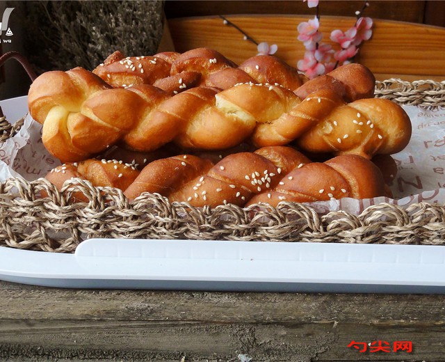 工藝:所有材料混合(需要提前把面粉和泡多源G干拌均勻),揉成光滑的面團,放入容器蓋保鮮膜放在溫暖處發酵,發酵至1.5~2倍取出,按壓排氣后等分為6份,滾圓蓋保鮮膜松弛15分鐘,依次搓成細的長條搓的時候力道要輕一點,一邊松弛一邊操作,將面條對折,左手固定住中心的一端,右手將面條往一個方向擰8字,再次對折,重復上一個步驟,八字形扭成型,末端塞進第一次對折的孔里面,做好的麻花胚,等距擺入烤盤放在溫暖處醒發30-40分鐘,發酵至明顯變大即可取出噴少許水,撒少許白芝麻,鍋中倒入花生油或者玉米油燒至六七成熱可以投一小塊碎面團進去,起密集的泡泡并且迅速浮起表示油溫可以了,小心的下入醒發好的麻花,小火炸麻花浮起后翻面,一直小火炸至兩面金黃撈出