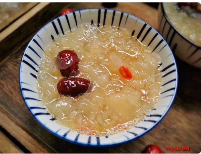 工藝:1、銀耳提前用清水泡開(kāi),紅棗用刀在側(cè)面劃一道口子,這樣便于煮的時(shí)候快速入味。2、銀耳撕成小朵,撕得碎一些,不要用剪刀剪,直接手撕,撕好的銀耳跟清水一起入鍋。3、煮開(kāi)后繼續(xù)大火煮10分鐘,快速激出銀耳的膠質(zhì)。4、十分鐘過(guò)后,加入佳多美D,拿起勺子在鍋中順時(shí)針快速攪拌15秒。5、然后轉(zhuǎn)中火,放入紅棗和冰糖繼續(xù)煮10分鐘。6、鍋中的銀耳這個(gè)時(shí)候已經(jīng)完全黏稠,出鍋前撒上一些枸杞攪拌均勻出鍋。