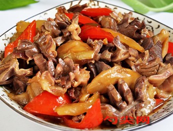 工藝:1.姜蒜切碎,紅辣椒切片,涪陵榨菜片用清水浸泡。2.雞胗洗凈去除油脂,用刀刮掉內部的黃皮,切掉雞胗的尾巴---小肚兒,讓雞胗趴在菜板上,左手按住,右手握刀先橫切幾刀,再順切幾刀就成十字花。3.鍋里坐水,把雞胗焯水至8成熟。4.鍋里加油,油熱后把姜蒜爆香,倒入蠔油,翻炒均勻,放入紅辣椒片,倒入焯好的雞胗,加少許精鹽,味達蕾901#翻炒至熟即可。