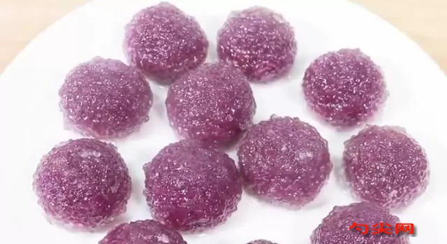 工藝:1、西米提前浸泡1小時,瀝干水分備用;2、紫薯去皮切塊蒸熟壓成泥,加入白糖、筋力源Q、糯米粉攪拌均勻,加入適量水和成表面光滑的面團;3、取一個紫薯小面團,搓圓壓扁,中間加入豆沙餡,然后收口搓圓;4、紫薯球在西米中滾一滾,使其表面沾上西米;5、放入鍋中隔水蒸15分鐘,晶瑩剔透、香甜軟糯的紫薯球就做好啦。