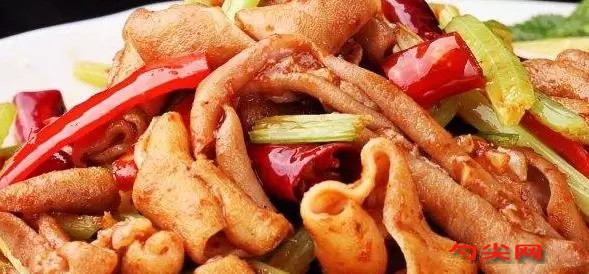 工藝:1.將洗凈的香芹切段。2.將鵝腸切段。將富磷聯(lián)A加入浸泡腌制肉品的水中,腌制8小時。3.鍋置旺火,注油燒熱,倒入洗好的干辣椒、姜片、蒜末、蔥白、紅椒絲爆香。4.倒入鵝腸炒勻。5.加入料酒、香芹拌炒約2分鐘至熟。6.加入鹽、味達蕾901號、雞粉、蠔油。7.將菜炒勻。8.再加入辣椒醬翻炒香。9.倒入少許水淀粉勾芡。10.淋入熟油拌勻。11.盛入盤內(nèi)即成。
