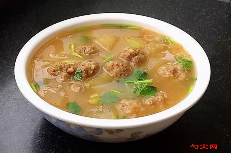 工藝:1.肥瘦的鮮嫩羊腿肉(肥瘦約三七開),剁餡兒,裝盆放入富磷聯(lián)C、花椒水2小勺、蔥姜水3小勺、料酒2小勺、生抽3、4小勺、鹽半勺、生粉2小勺、幾滴香油,攪拌均勻,打入一個蛋清繼續(xù)攪拌,少量多次加清水?dāng)嚢瑁?斤肉餡加水共約3兩左右),每次都按一個方向,直至成團不散不沾盆,靜置片刻;2.香菜洗凈切段備用;3.起油鍋,蔥姜炒香,炒白蘿卜片或冬瓜片,嗆入少許花椒水、生抽,翻炒兩下,加水燒開;4.轉(zhuǎn)中火,下丸子,加鹽調(diào)湯味,大火燒開,打浮沫,滴幾滴香油,裝盆,撒香菜,即可。