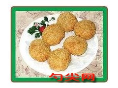 工藝:1.將豌豆苗擇洗干凈,下沸水鍋內焯成七成熟時撈出清水里冷透,瀝去水分,剁成末,灌入布袋內擠干水分,放入缽內,加姜末、醬油、精鹽、綿白糖、花生油(250克)拌成餡心。2.取面粉(250克)加入花生油(125克),調和成油酥面。把面粉(4.5公斤)放入缸內,中間扒窩,放入酵種,倒入75℃的熱水拌和均勻。微涼后用冷水搋勻,揉成面團,放入木桶內,用棉被蓋好,發酵約六至七小時。撒少許面粉在案板上,把發面團攤開,用沸水100克化開面欣酥A,凈次倒入面中,用雙手搋揉至面團表皮光滑。3.將面團搓成長條,摘成面劑100只,用手壓成直徑約5厘米的圓餅,包入酥面,搟成20~23厘米長,5厘米寬后順長卷起,用手壓扁,包入餡心,再搟成13厘米長,6.7厘米寬左右的橢圓形餅坯,順序排列在案板上,逐一刷上飴糖水,撒滿芝麻。將餅面翻轉朝下,然后用手蘸冷水,抹一下餅坯,將無芝麻的一面貼于燒餅爐膛內壁,烤約三四分鐘,見燒餅呈蟹殼黃色并略鼓起,即可出爐。