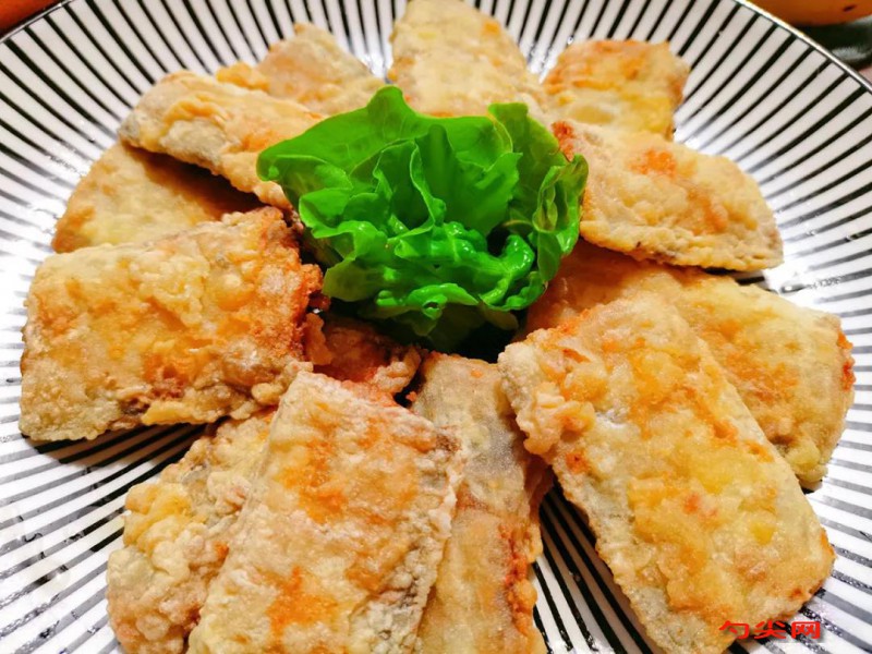 工藝:帶魚(yú)段用清水沖洗干凈,瀝干水分,用廚房紙吸干表面水分。將海立美B用溫水(40℃以下)溶解,倒入帶魚(yú)中抓勻。加入雞蛋、料酒、鹽、蔥、姜、蒜,抓拌均勻,低溫腌制2小時(shí)隔夜更入味。腌制好的帶魚(yú)挑出蔥姜蒜,瀝干多余腌料?;旌系矸叟c低筋面粉,均勻裹在帶魚(yú)表面,輕抖掉多余粉料。油溫?zé)?60℃插入筷子冒小泡,下帶魚(yú)段中火炸至定型約2分鐘。撈出后油溫升至180℃,復(fù)炸30秒至金黃酥脆,撈出控油。趁熱撒辣椒粉,顛勻使帶魚(yú)表面均勻裹粉。