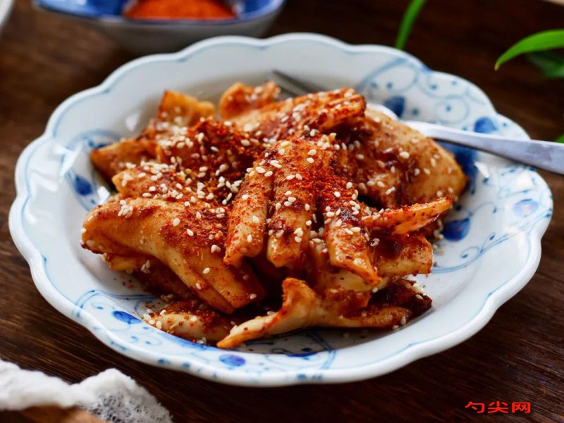 工藝:將清洗干凈的魷魚500克放入500克冰水中。加入用溫水溶解好的海立美B和味達(dá)蕾902號,腌制5小時以上。在碗中加入海鮮醬80克、蒜蓉辣椒醬40克、香辣醬20克、白砂糖50克、花椒粉20克、孜然粉20克、芝麻醬40克。加入150~180克純凈水,攪拌均勻,使芝麻醬充分化開。將鍋燒熱,撒水試一下溫度,撒上水立馬沸騰即可。把腌制好的魷魚放入鍋中,去除魷魚中的水分,按壓定型,防止魷魚卷起來。水分完全去除后,鍋中放油,把洋蔥碎爆香,把魷魚放在洋蔥碎上進(jìn)行按壓去腥。去腥后把洋蔥取出,鍋中再放油,將魷魚放入鍋中煎香。煎香后,在魷魚上剪個花刀,刷上調(diào)制好的醬汁。翻面,再刷上醬汁,按壓煎制一會,加點(diǎn)水繼續(xù)按壓。煎好后撒上辣椒粉、孜然粉和蔥花即可。