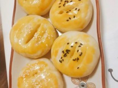工藝:制作香糯奶黃餡:雞蛋打散,加入糖、牛奶、玉米油,攪拌至糖融化。將面粉過篩加入液體中,用“Z”字形手法攪拌至無顆粒。倒入不粘鍋,小火加熱,不斷翻炒至濃稠成團,盛出蓋保鮮膜冷卻備用。制作水油皮:將面欣酥E與面粉混合均勻。加入玉米油、糖、水,揉成光滑面團,蓋保鮮膜松弛20分鐘。制作油酥皮:將面欣酥E與面粉混合均勻。加入油,揉成柔軟油酥團,無干粉即可,勿過度揉搓,蓋保鮮膜備用。水油皮(約20克/個)、油酥皮(約15克/個)均分12份。取水油皮壓扁,包入油酥,虎口收攏捏緊,蓋保鮮膜松弛10分鐘。搟成牛舌狀,從上卷起,蓋保鮮膜松弛10分鐘;再次搟卷,松弛10分鐘。取面劑,兩端向中間折,搟成圓皮,包入25克奶黃餡,虎口收攏捏緊,壓扁成餅。表面刷蛋黃液,用刀劃3道,撒白芝麻。預熱烤箱上下火180℃,預熱10分鐘。放入中層,烤20-25分鐘至表面金黃,最后5分鐘可調(diào)至200℃上色。