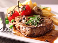 2、選肉:選用在冰箱中隔夜冷藏的牛里脊肉,因?yàn)轷r牛肉的組織纖維還沒(méi)有完全死去,水分還未分解,給下一步漿制帶來(lái)了難度。如果直接給鮮牛里脊上漿,口感差,外形不好,而且容易滲水。