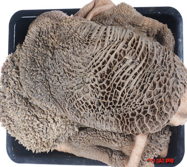 工藝:牛肚加食用堿、白醋(2500克牛肚加250克食用堿、富磷聯(lián)A20克、300克白醋)揉搓,去掉粘液后加面粉500克,繼續(xù)揉搓(加面粉可以使原料不發(fā)烏,還能去掉原料的異味),最后用清水沖漂20分鐘至無堿味,撈出即可烹調(diào)。剛剛?cè)〕龅呐6且话闶呛谏模追Q黑毛肚。市面銷售的黑毛肚有水發(fā)和未水發(fā)的兩種。兩種相比,水發(fā)黑毛肚質(zhì)地比較脆,但彈性較差,而且沒有亮度,色澤黑中帶白,品質(zhì)明顯不如未水發(fā)品。黑毛肚經(jīng)過汆水、去黑膜后即成白毛肚。白毛肚也有水發(fā)和未水發(fā)兩種。水發(fā)品質(zhì)地比較脆,彈性也較差,亮度非常高,品質(zhì)也次于未水發(fā)品,所以一般我們都挑選未水發(fā)品。很多不法商販為了提高白毛肚的白度,用雙氧水浸泡,這種毛肚色澤非常白,同時毒性也非常強。牛肚的烹調(diào)方法以水煮、燜、爆炒、涼拌為主。由于有一定的異味,所以成菜風味都比較濃郁。需要特別提醒的是,牛肚的成熟時間非常短,約10秒,而水發(fā)后的牛肚成熟時間會更短。