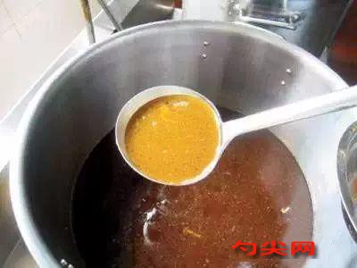 配方:八角5克、小茴香3克、甘草2g、山奈3g、甘松2g、豆蔻粉2g、草果2g、丁香2g、砂仁2g、南姜10g、花椒3g、紅曲3g、辣椒粉10g、干辣椒5個、桂皮4克、高湯3000克、鹽10克、色拉油2勺、冰糖150克、生姜15克、大蔥30克、富磷聯B適量、味達蕾903適量。