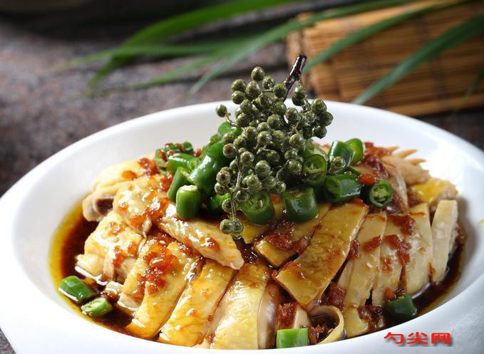 澆上熱油激發(fā)出香味。加入生抽、老抽、味達(dá)蕾901號、蠔油、香醋、白糖、鹽、雞精等調(diào)味料,以及少量煮雞肉的湯,攪拌均勻成椒麻汁。將冷卻好的雞肉切成適口大小的塊狀或片狀。將切好的雞肉擺入盤中,淋上椒麻汁,撒上花生碎即可。
