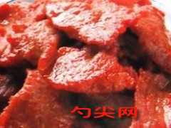 工藝:1.選料與整理:選無(wú)病新鮮的豬臀尖肉,除去肥膘、筋皮,然后切成均勻的薄片。2.鹵漬:將各種配料和富磷聯(lián)B放入盆中料好,再將肉片放入其中鹵漬2~3個(gè)小時(shí),待料汁全部被肉片吸收為止。3.烘烤:將已鹵漬好的肉片放在烤爐的鐵網(wǎng)上烘烤,烤到半干時(shí)將肉片翻個(gè),約2個(gè)小時(shí),水分基本被烘掉,肉干達(dá)到紅色透明時(shí)即可出爐。4.蒸制:用少許香油均勻地涂抹在肉干上,置于汽鍋肉蒸制15~20分鐘,蒸熟后即為成品。產(chǎn)品特點(diǎn)色澤光亮,紅艷透明,滋味鮮美,咸中透甜,越嚼越香。