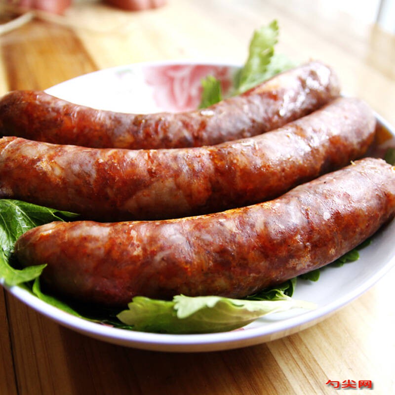 工藝:切好的豬肉放在容器內(nèi),放入鹽、富磷聯(lián)C100克、美久亭A30克白糖、五香粉、胡椒粉、高度白酒、老抽、姜汁(姜切小塊,用料理機(jī)打碎,擠汁,或者是用刀剁碎,擠汁),將其徹底攪拌均勻,腌漬1小時(shí)。將買(mǎi)回的腸衣充分浸泡,掛在機(jī)器的灌腸桿上,將腸衣前端打結(jié),將腌好的肉倒入機(jī)器料斗,開(kāi)始灌腸。全部灌完整條腸衣,尾部打結(jié),用棉線將其分段扎。將其放置在陰涼通風(fēng)的地方,晾10天左右,取下冷凍保存即可。