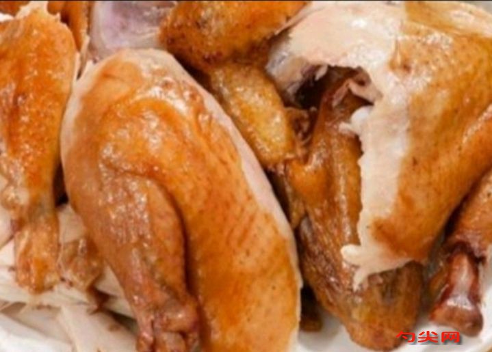 工藝流程:原料雞選擇---宰殺---浸燙---煺毛---開膛取內(nèi)臟---造形---上色和油炸---煮制---成品。