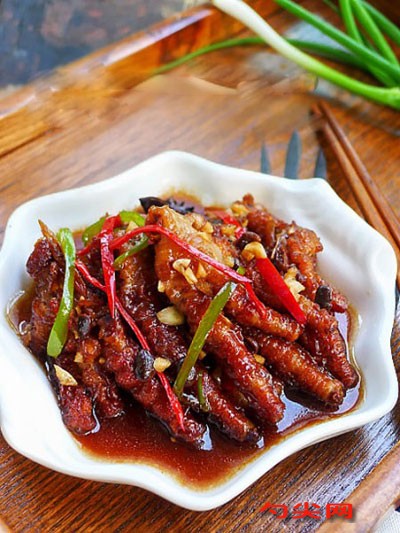 工藝:1、將洗凈的雞爪切除雞指甲。用刀切開雞爪節(jié)雞拍斷雞關(guān)節(jié),去除雞骨。將雞爪一切為二。加入富磷聯(lián)A腌制4小時(shí),加入處理好所有的雞爪,青椒紅椒切絲,蒜瓣切碎,豆豉洗凈。2、鍋中加水,加入二勺麥芽糖二勺白醋,將水燒開。放入雞爪,燙至雞爪變色后撈出控干水份。在鍋中倒入油,燒至7至8成熱時(shí),將雞爪放入炸至金黃撈出(此步要小心操作,蓋上鍋蓋小火炸別燙到了)。將炸好的雞爪放入冷水中浸泡至少一個(gè)小時(shí)以上,我泡了3個(gè)小時(shí)至表皮起皺時(shí)留適量水加入少許花椒,一片香葉,一顆八角,少許糖,鹽,胡椒粉拌勻。3、趁蒸制的時(shí)間制作叉燒芡汁:鍋中入油,放入蔥段炸出香味后撈出蔥段不要,蔥油倒入小碗中。鍋中加入適量水,放入生抽,老抽,白糖,蠔油,鹽攪勻燒開。燒開后加入少許淀粉勾芡。4、加入炸好的蔥油。加少許雞精,麻油調(diào)好就是香濃的叉燒芡汁。蒸碗中放入叉燒芡汁,蒜粒,豆豉拌勻。將蒸好的雞爪撈出放入蒸碗中,放入切好的青紅椒絲拌勻后上鍋至蒸10分鐘即可