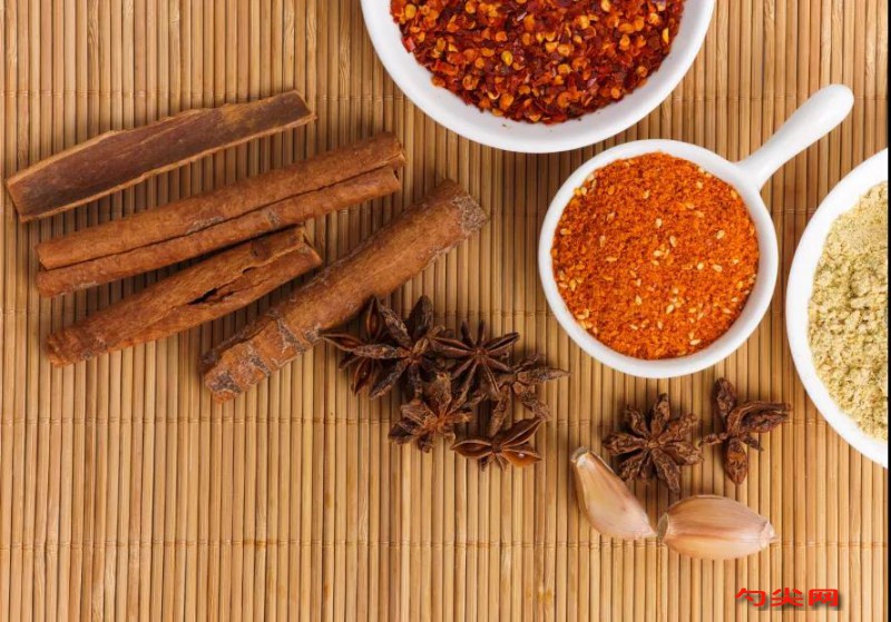 1、以芳香為主的香辛料:大茴香、肉豆蔻、肉桂、丁香、小茴香、豆蔻、多香果、花椒、孜然、蒔蘿子。