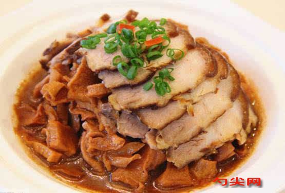 1、鍋燒紅,將肉皮朝下,烙干凈肉皮上的毛毛和表皮層臟東西。用刀將肉皮表層刮干凈.用溫水洗凈。