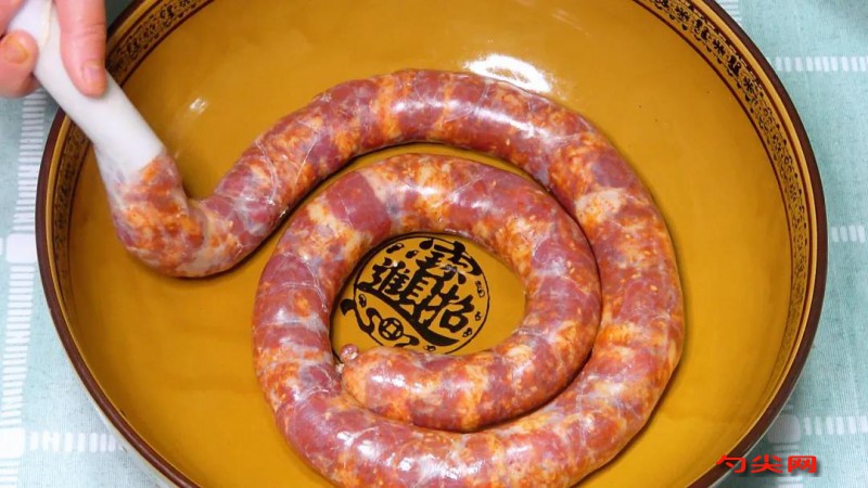 1:腸衣清洗:清洗腸衣是比較麻煩和費時的,首先用清水多次漂洗,然后將腸衣翻過來,撤掉多余的油脂,清水漂洗,然后加蔥姜,白酒,食鹽抓揉,反復(fù)3次后用清水漂洗干凈,分開晾曬一下備用。