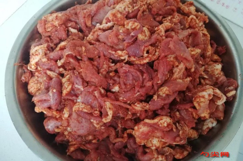 2:腌肉:豬肉去掉豬皮,去掉筋膜,將豬肉切成小肉塊(肥瘦比例3:7)。以10斤豬肉為例:加入白酒2兩,富磷聯(lián)C 味達(dá)蕾4 味達(dá)蕾89 味達(dá)蕾90食鹽3兩左右,五香粉適量,冰糖粉1兩,花椒面1兩,辣椒粉3兩,雞精適量,花生米3兩。將料拌勻,腌制3小時。