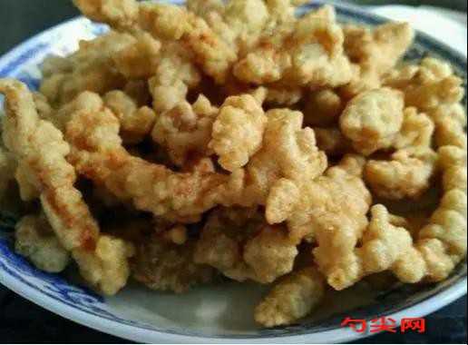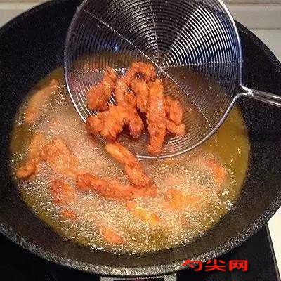 將撈出來的酥肉控干油份后進行第二次油炸,鍋中的火要轉大火,等到酥肉的表面炸至金黃后就將其撈出來,第二次油炸的時候時間不要太久,以免酥肉炸糊,等到酥肉全部炸完之后就可以了,這樣炸出來的酥肉非常的香脆好吃。
