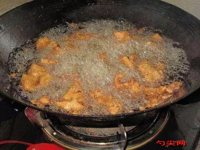 把鍋洗干凈燒熱,倒入適量的食用油,待油溫6成熱的時候轉中火,再把調好的肉片放入到油鍋中,等到肉片炸至定型后進行翻面,鍋中的肉片一次性不要炸的太多,不然肉片會連在一起,等到鍋中的肉片炸至兩面微黃后,就可以撈出來了。