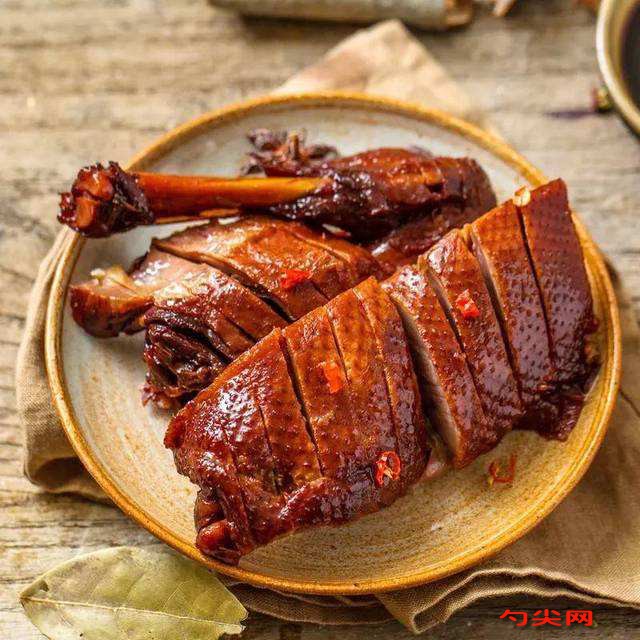(2)將仔鴨下入自制鹵水,鹵至七成熟,外皮成金黃色時撈出。