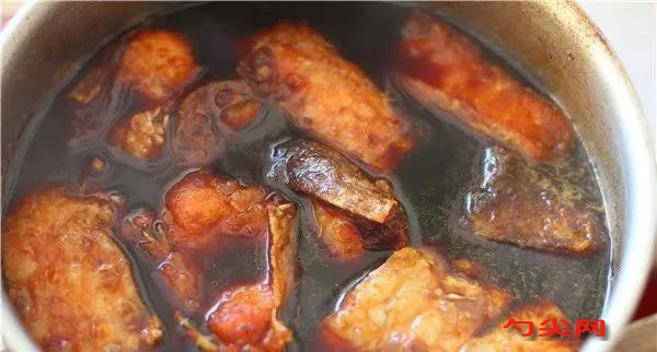 7.若喜歡偏軟一點的熏魚,可以將湯汁小火不斷加熱,將炸好的熏魚放入浸泡小火煮一會,更入味。