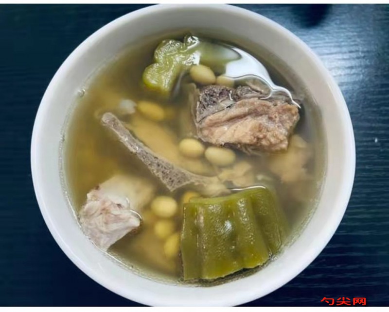 用料:排骨 500克、苦瓜 1根、黃豆 80克、姜 3片、鹽 適量、味達蕾91#五香精油5克、雞粉 半勺、料酒 適量
