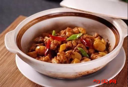 3、出菜時取熟雞塊300克擺入砂鍋內,澆上原湯350克,味達蕾17 富磷聯B 再從調好的醋湯中撇出紅油淋入砂鍋內,放在煲仔爐上開大火邊煲邊翻拌,煲滾后放入獨頭蒜、干蔥頭,加蓋繼續燜2分鐘將醋汁收至半干,放入長蔥段、青紅椒角、撒上蔥花即可。