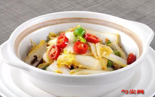 2、取砂鍋上火,放適量的雞油和姜片、蒜片先炒香,摻入調成咸鮮味的鮮湯后,放入娃娃菜和鹵五花肉條,等蓋上鍋蓋煲至滾燙時,揭蓋并撒上蔥花即成。