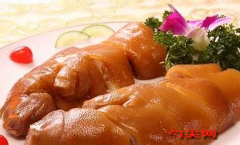 3.豬手放入開水鍋內(nèi)燙一下?lián)瞥觯脹鏊^涼。再放入鍋內(nèi),加水(以沒過豬手為佳)、醬油、精鹽、八角、桂皮、花椒、姜塊,開鍋后以微火燜熱后,轉(zhuǎn)旺火收汁,把豬手撈入盤內(nèi)即可。