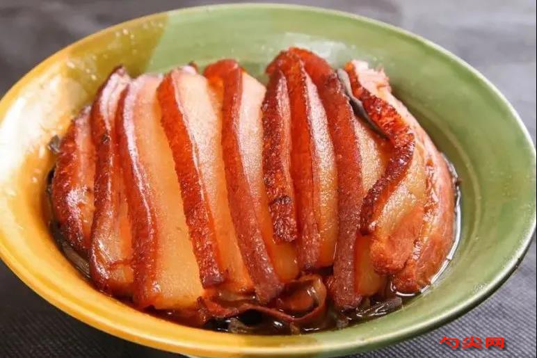 4. 起鍋燒油,油溫6成熱,放入五花肉炸,一定要迅速蓋上鍋蓋,炸至肉成棗紅色撈出,放入涼水泡10分鐘。