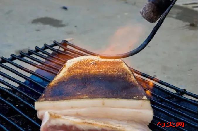 1. 五花肉切大塊,起鍋不要放油,豬皮在鍋中燒一下,然后放在水中用鋼絲球把豬皮刷干凈(有噴槍的可以用噴槍燒)。
