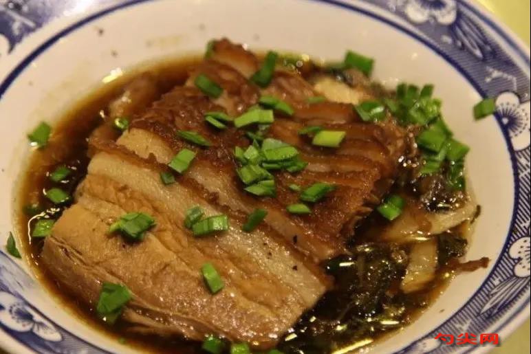 7. 碗上放盤子,將碗倒扣在盤子里,扣好后肉上放香菜、蔥花和韭黃,澆上煮肉的湯即可食用。