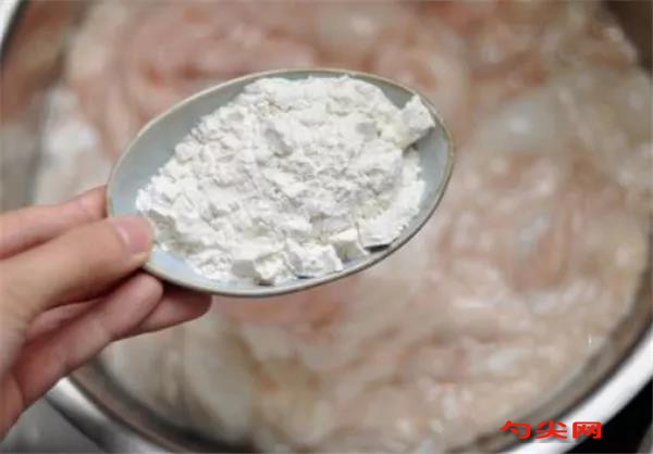 同時還需要加入的白醋。白醋是洗去豬大腸腥臭味的關鍵,300克豬大腸加三勺白醋即可,然后開始揉搓。洗豬大腸要一段一段揉搓,面粉和白醋的混合可以有效洗凈豬大腸,第一遍揉搓大約需要3分鐘的時間,即可完成。