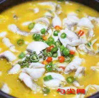(3)調味出鍋:炒好的底料加入鮮湯500克熬8分鐘,再調入鹽8克、味精10克、雞精10克,放入炸好的花鰱魚條,燒開轉入火鍋專用鍋上桌食用。
