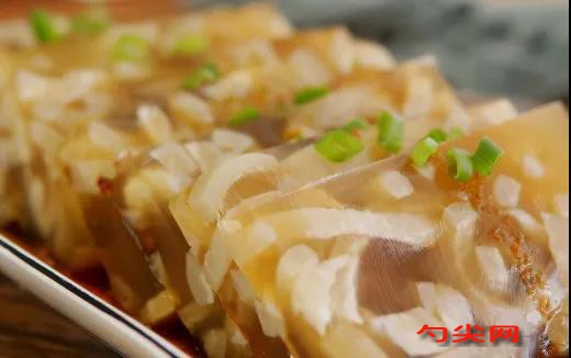 等吃的時候,把豬皮凍脫模切成小塊或者片,擺盤后調一碗料汁,淋在豬皮凍上,也可以蘸著吃。