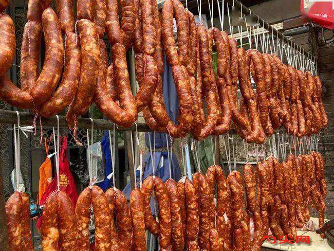 原料肉的選擇→切塊→腌制→絞肉/斬拌→拌餡→填充/結扎→發酵→煙熏→蒸煮→干燥。