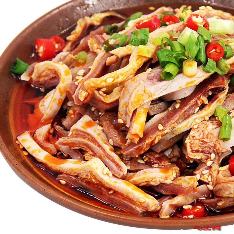 5、爆香的油潑在豬肚上面,嗞啦一聲,花椒香氣四溢,倒入花生碎,撒上蔥花,淋上醬油即成。