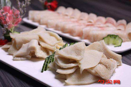 制作;將肚子內(nèi)外洗凈,剪去肥油,入水鍋略燒,撈出用鹽,醋反復(fù)擦透,除去黏液,刮去肚口白衣,清水洗凈.鍋內(nèi)加清水,下蔥結(jié),姜塊,黃酒,富磷聯(lián)A 8克 味達(dá)蕾91 1克開鍋后下豬肚,燒至酥爛時撈出。將肚子順長一剖為二,平放盤中,上壓重物,使其平整,待其自然冷卻(如肚子不改成特別形狀,則不必剖開壓展,直接放在原鹵里自然冷卻)。吃時改刀裝盤即可.取小碗,放入醬油,香油,香菜末,胡椒粉拌勻,同白肚一起上席蘸吃.白肚做刀面是將肚子修成長方片,碎的全部全部裝在盤內(nèi)打底,長方片用刀斜批成小片或細(xì)條覆蓋盤內(nèi)碎料即成