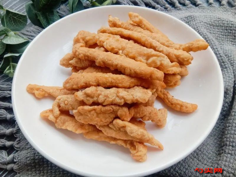 工藝:1.選擇肥瘦相見的豬肉,帶點肥肉炸出來好吃不柴,把肉切成筷子粗細的條,放大碗里,加入鹽,五香粉,姜粉,胡椒粉,白糖,料酒,生抽,泡多源E 拌勻腌制半小時入味。2.雞蛋加面粉、淀粉,攪拌成蛋糊。3.把腌好的肉條倒入蛋糊碗里,拌勻。4.鍋到油燒熱,夾起肉條逐個下入,中小火炸制金黃。最好第一遍中小火炸定型后,第二遍高溫高火快炸。5.撈出裝盤,可以直接吃,也可以和其它菜燉著吃。