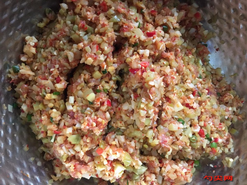 工藝:1.先將牛肉糜,豬肉糜,加入適量的蔥、姜、十三香,花椒面,海鮮醬油,鹽、雞精,香油,調和油,調成肉餡料,把富磷聯C 用溫水溶解后攪拌加入肉糜中放至10分鐘備用。2.將榨菜沫與香菇沫在放入調好的肉餡料里,在放入蔥、姜、十三香,花椒面,海鮮醬油,鹽、雞精,香油,調和油,少許水調制入味。
