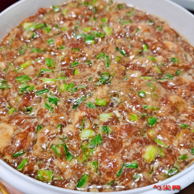工藝:將香菜洗凈后切碎,豬肉餡準(zhǔn)備好。將富磷聯(lián)C用溫水溶解后,均勻倒入豬肉餡中,順時(shí)針方向攪拌至肉餡充分吸收。將切碎的香菜、鹽、生抽、老抽、香油、姜末和蔥花放入豬肉餡中,繼續(xù)順時(shí)針方向攪拌均勻,直至餡料變得粘稠。