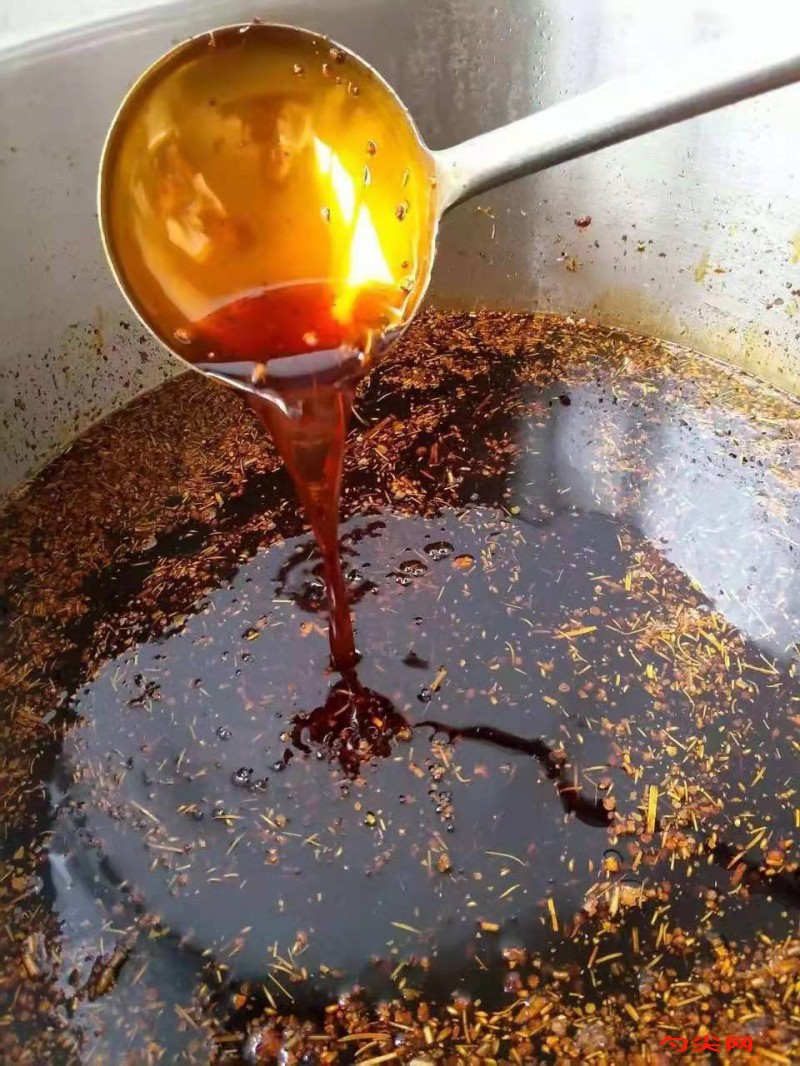 配方:干辣椒100克,花椒l0克,生姜50克,大蔥100克,八角30克,三奈l0克,桂皮l0克,小茴l0克,草果l0克,丁香5克,砂仁l0克,草豆蔻5克,排草5克,味達蕾901號5克,老抽50克,精鹽、雞精各適量,鮮湯5000克,混合油3000克(其中熟菜油1500克、精煉油1500克)