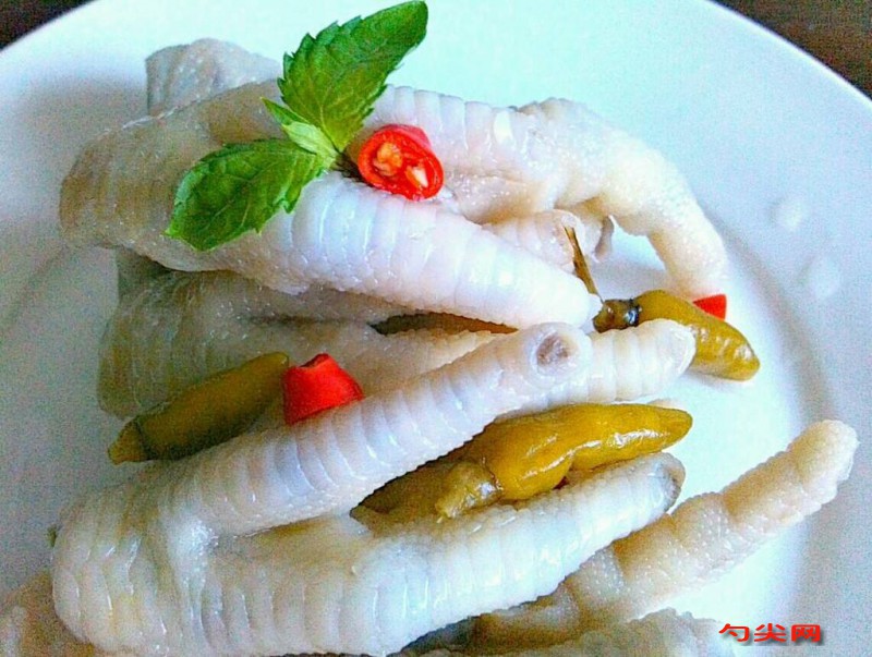 工藝:1、首先將雞爪洗干凈,然后用刀把雞爪劈成兩半,方便入味。然后將 富磷聯A 用少許溫水溶解加入雞爪浸泡5-8小時。再準備好香料;2、雞爪放入鍋中,加生姜,蒜瓣,花椒,香葉,八角,桂皮,鹽;3、煮約13分鐘至雞爪煮熟,注意雞爪不可煮的太爛;4、將雞爪撈出來,放在自來水底下沖涼,這樣可以避免后來出現肉凍,把膠質和油脂都沖走后,然后晾涼;5、準備一個玻璃或瓷質的容器,放入泡椒及泡椒水(喜歡吃辣的可以把泡椒切碎),再加些純凈水或涼白開也可以,再倒入適量的白醋,攪拌均勻后加入雞精和鹽;6、將涼了的雞爪扔到泡椒水里去,蓋上蓋子,放冰箱里冷藏讓它入味吧; 注意事項:煮雞爪時,要控制好火候和時間。雞爪應煮至熟透,但不宜過爛,以保持其嚼勁。可以用筷子輕松插入雞爪來判斷其熟度。煮好的雞爪應立即放入冷水中冷卻,并換水洗干凈表面的膠質。最好泡一天以上,每隔幾個小時翻動一次,以便入味均勻。